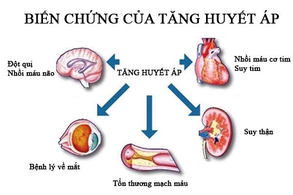 Tăng huyết áp nếu không được chẩn Ä‘oán và Ä‘iá»u trị kịp thá»i dá»… gây ra biến chứng nguy hiểm trên các cÆ¡ quan như tim, não, mắt, động mạch ngoại biên.