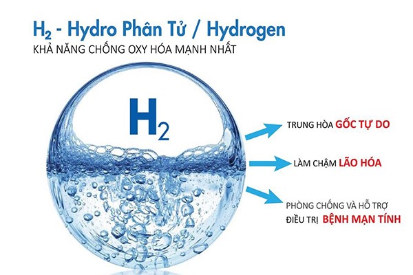 Khi Hydro được hấp thụ vào cÆ¡ thể, các phân tá» này sẽ kết hợp vá»›i các gốc tá»± do tạo thành nước, lúc này gốc tá»± do Ä‘ã hoàn toàn vô hại và không còn khả năng tấn công các phân tá» khác để cướp e-: H2 + .OH = H2O + H. (.OH là Hydroxyl Radical – má»™t loại gốc tá»± do Ä‘iển hình dẫn đến quá trình lão hóa cÆ¡ thể và gây ra nhiá»u loại bệnh khác nhau).