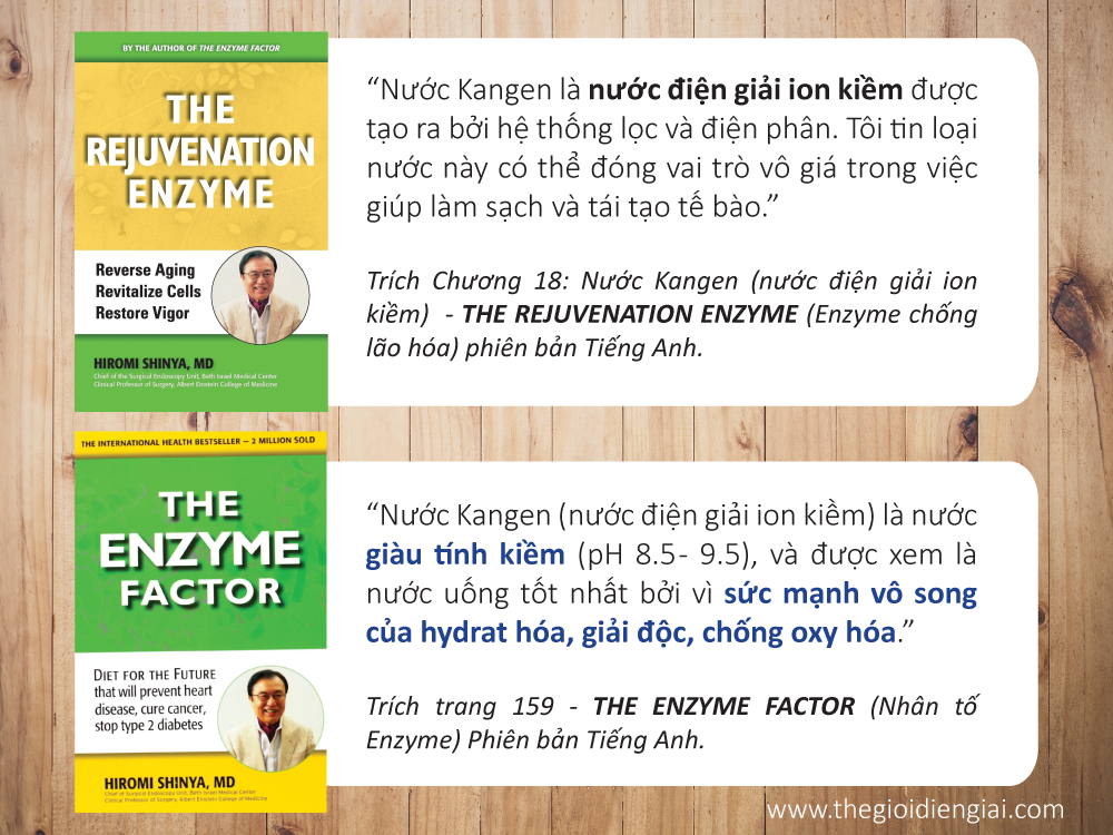 Äây là cuốn sách "gối đầu" không thể thiếu cá»§a những độc giả quan tâm đến sức khá»e, nhất là sức khá»e cho gia Ä‘ình như bố mẹ, con cái... Tác giả cuốn sách là Hiromi Shinya - Bác sÄ© Trưởng khoa Ná»™i soi dạ dày cá»§a má»™t bệnh viện lá»›n ở Mỹ. "Nhân tố Enzyme" (Tên tiếng Anh: The Enzyme Factor) - Cuốn sách cung cấp kiến thức, chế độ dinh dưỡng khoa há»c, những nháºn định sai lầm vá» cách ăn uống cần tránh… giúp cÆ¡ thể khá»e mạnh. Trong Ä‘ó, đặc biệt vá» nước uống, bác sÄ© Shinya nhấn mạnh chúng ta phải uống nước tốt chứ không phải chỉ là nước sạch bởi sức mạnh vô song cá»§a hydrat hóa, giải độc, chống oxy hóa...